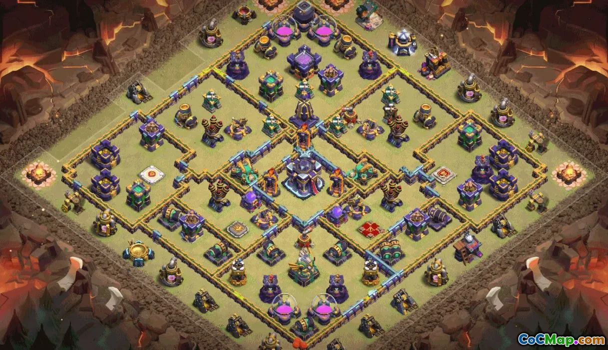 Typically, these layouts include well-placed defensive structures, such as cannons, Archer towers, and walls, arranged to cover key areas like the home village, trophy pushing zones, and war bases. This helps to create a strong defensive perimeter that can withstand attacks and discourage opponents from launching aggressive raids. The maps and base structures are often shared via links to make it easy for players to copy and implement the designs directly into their game, saving time and effort.