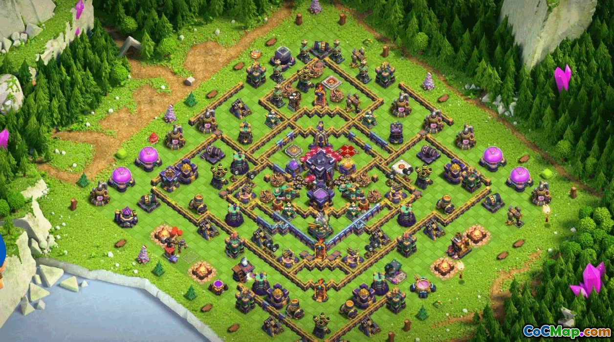 In addition to town hall layouts, there are dedicated designs for the home village, trophy bases, and war bases. Each type of layout serves a different purpose: the home village layout aims to safeguard resources, the trophy base focuses on protecting trophies by deterring attackers, and the war base is optimized for clan wars, often emphasizing a centralized design to protect the clan's most valuable structures. These variations allow players to customize their defenses based on their current goals and gameplay style.