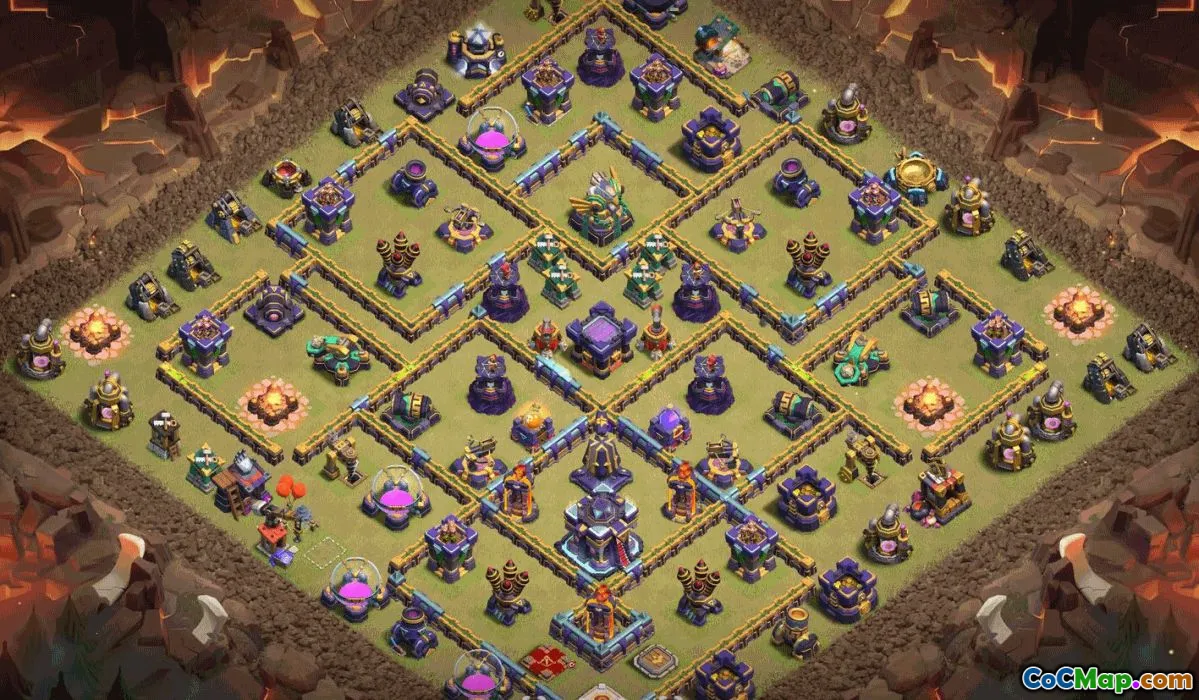 The layout includes various types of bases suitable for different aspects of the game, such as the home village, trophy base, war base, and general Clash of Clans map. Each layout is crafted to serve specific purposes, whether it’s climbing the trophy rankings or defending during clan wars. These layouts incorporate best practices for base design, including centralized Town Hall, well-distributed defenses, and effective resource protection.