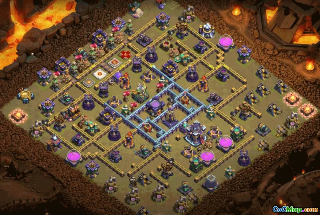 Additionally, the information seems to emphasize the importance of having well-structured base layouts to suit different gameplay strategies. For instance, a trophy base may focus on protecting high-value resources from attackers, while a war base layout is optimized for clan wars, with defenses arranged to withstand coordinated attacks. The inclusion of the Clash of Clans map and base layout links suggests easy access to visual templates or tools to customize and implement these bases in-game.