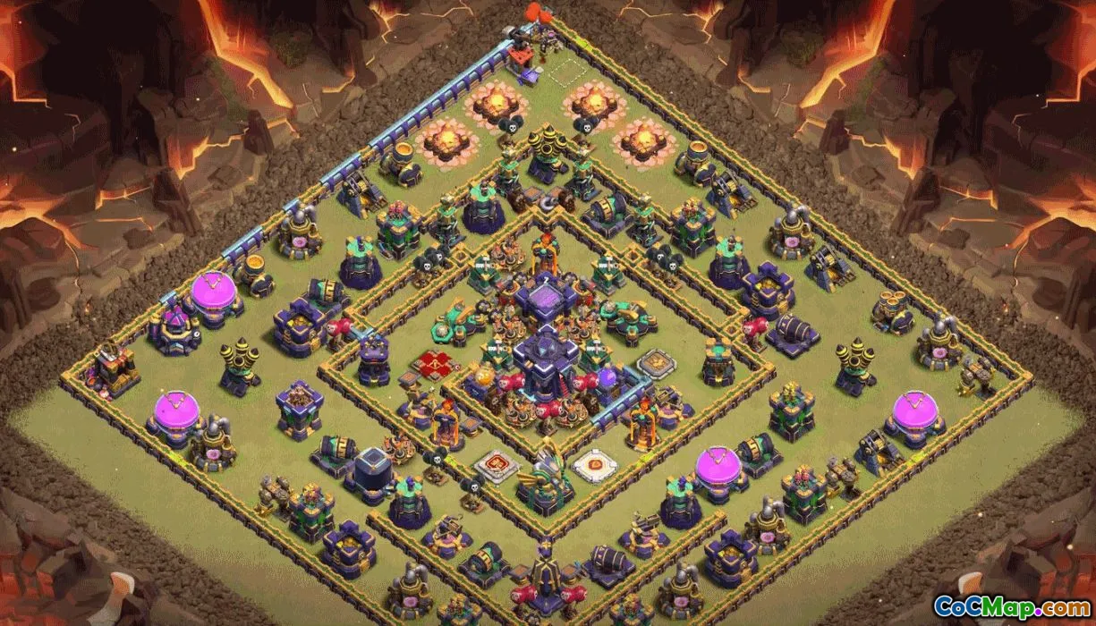 In addition to the home village bases, players seeking success in Clan Wars or multiplayer battles also work on specific war base layouts. War bases are typically designed to make it difficult for opponents to earn stars, often by centralizing key defenses and Town Hall or by placing traps and hidden defenses in strategic locations. Trophy bases are another important layout type used to protect trophies from being lost during attacks, usually by creating patterns that lure attackers into unfavorable positions or spread out defenses to minimize their impact. The Clash of Clans map and base layout guides help players locate specific designs that suit their level and strategic preferences.