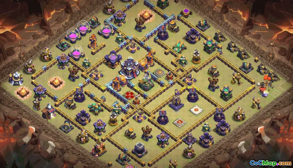 The layout includes various types of bases such as trophy bases, war bases, and general coc map layouts. Each of these is optimized for specific gameplay scenarios, aiming to help players improve their defenses, secure trophies, and excel in Clan Wars. The design also emphasizes strategic placement of key defenses and resources to make it difficult for opponents to succeed against the village.