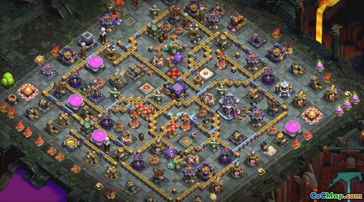 Explore Cloch of Clans Town Hall 15 base layouts including home village, trophy, war, and coc map designs. Copy and customize your perfect base!