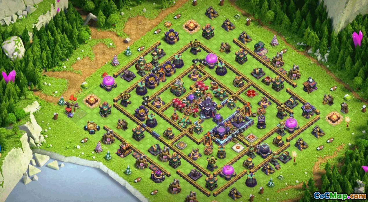 In addition to the layout designs, the document includes a map of Clash of Clans that provides an overview of the game’s features, along with links to various layout templates for different purposes. These links allow players to easily access and implement these layouts in their own villages, providing a valuable resource for both new and experienced players looking to improve their defenses and overall village management. By utilizing these layouts, players can boost their chances of success in both farming and war scenarios.