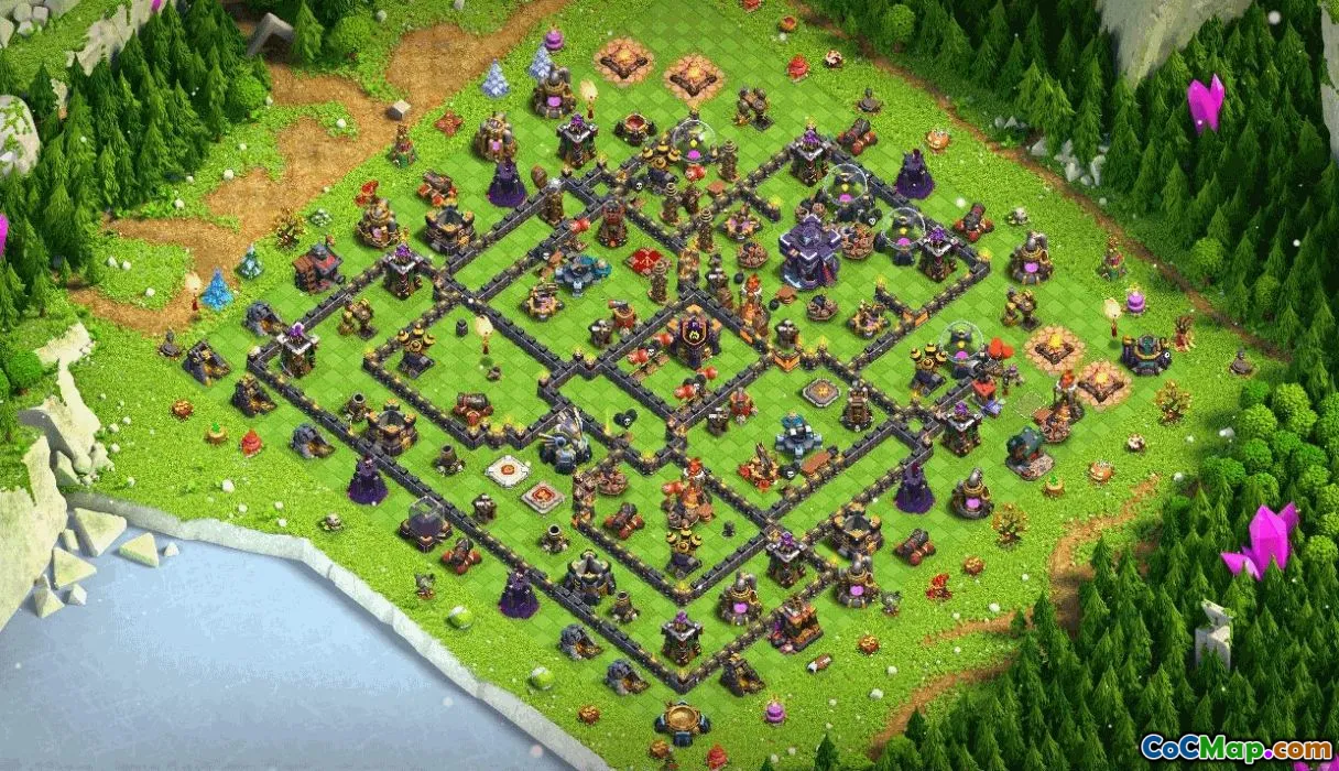 Additionally, players are interested in different types of bases such as home village layouts, trophy bases, war bases, and general Clash of Clans maps. Home village layouts are designed to protect resources and defenses, while trophy bases focus on defending trophy gains in multiplayer battles. War bases are specifically tailored to defend against enemy attacks during clan wars, often emphasizing centralizing key defenses and resources. The Clash of Clans map and base layout collections serve as valuable resources for players aiming to improve their defense mechanisms and overall game strategy.