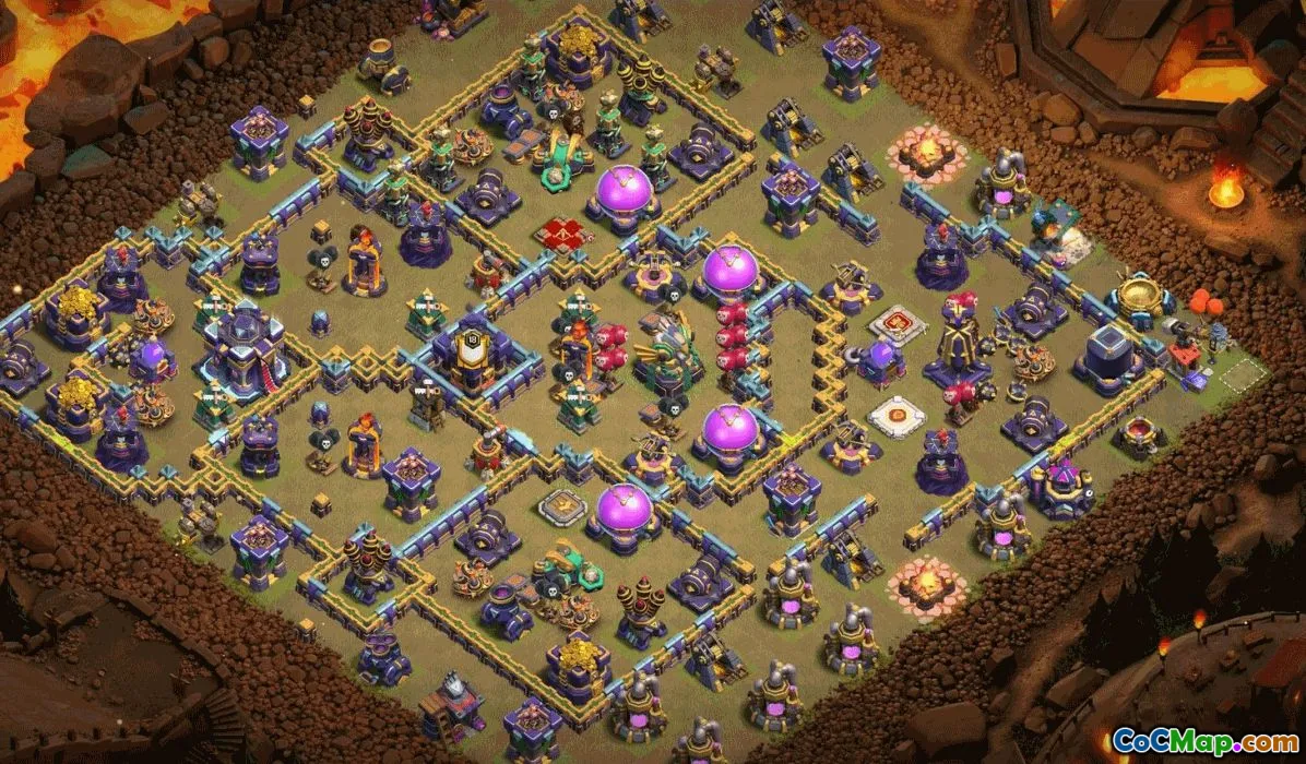 The layout includes various types of bases such as the home village, trophy base, war base, and coc map. Each of these serves a distinct purpose in the game. The home village layout is optimized for overall defense and resource protection, while the trophy base is designed to prevent players from losing trophies during multiplayer battles. The war base layout is crafted to maximize defense during Clan Wars, and the coc map provides a visual representation of the base's structure for easy sharing or analysis.