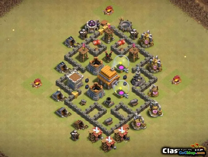Game Clash of Clans menawarkan berbagai tata letak dasar bagi pemain untuk mengoptimalkan strategi dan pertahanan mereka. Untuk Balai Kota 5, pemain memiliki akses ke berbagai tata letak yang memenuhi berbagai gaya bermain, termasuk pengaturan desa rumah, pangkalan perang, pangkalan piala, dan pangkalan pertanian. Setiap tata letak melayani tujuan tertentu, apakah itu untuk melindungi sumber daya, mendapatkan piala, atau mengamankan kemenangan dalam perang klan.