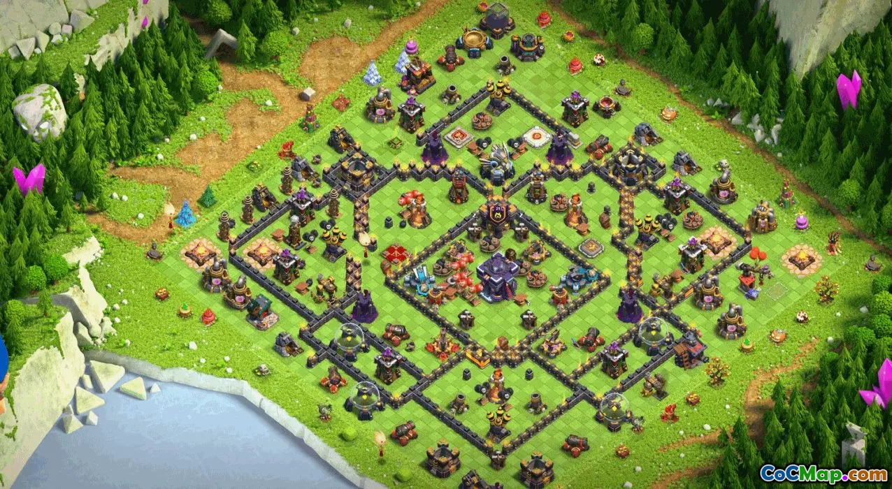 The base layout for Clash of Clans Town Hall 15 offers players a well-structured design to optimize their defenses and resource protection. This layout includes various types of bases such as the home village, trophy base, war base, and coc map, allowing gamers to choose the most suitable setup for different gameplay scenarios. The design emphasizes a balanced approach, combining effective defensive placements with strategic positioning of resource storages and key defenses.