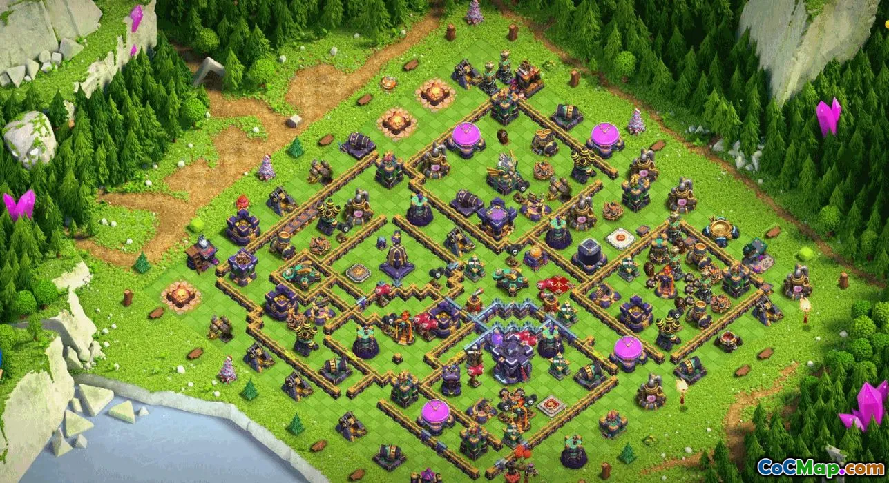 The base layout for Clash of Clans Town Hall 15 offers players a comprehensive design to enhance their defense and gameplay experience. This layout includes a variety of configurations, such as home village, trophy base, war base, and map layouts, allowing players to choose the best setup to suit their strategic needs. Each layout is carefully crafted to maximize protection of key buildings, resource storage, and defensive structures, making it harder for opponents to achieve victory.