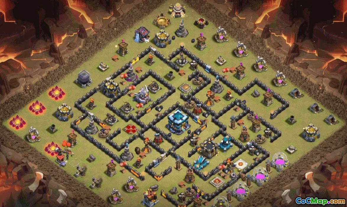 Discover a variety of expertly designed Clash of Clans Town Hall 13 base layouts suitable for different playstyles. Whether you're focused on defending your trophies, protecting your resources in the home village, or winning clan wars, these layouts are optimized to maximize your defenses and thwart attackers. Each layout is engineered with strategic placement of walls, traps, and defensive structures to create a challenging environment for enemies.