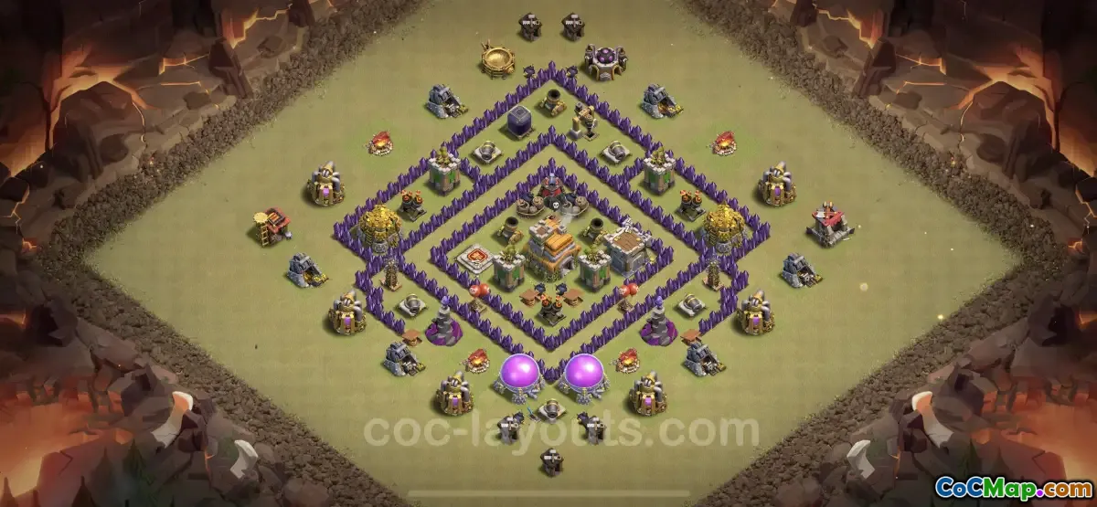 Pangkalan perang yang terstruktur dengan baik di Balai Kota Level 7 (TH7) berfungsi sebagai aset penting bagi pemain di Clash of Clans, khususnya dalam perang klan dan kompetisi liga. Desain pangkalan-pangkalan ini berpusat pada pertahanan efektif terhadap serangan musuh, dengan fokus pada menggagalkan strategi yang bertujuan untuk mengamankan tiga bintang dari lawan. Pemain didorong untuk mengadopsi konfigurasi dan tata letak tertentu yang meningkatkan kemampuan pertahanan dan meminimalkan kerentanan yang dapat dieksploitasi oleh penyerang.