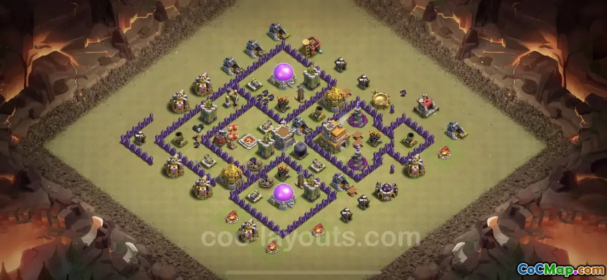 Salah satu fitur utama pangkalan TH7 teratas ini adalah desain hibridanya, yang memadukan elemen pangkalan pertanian dan perang. Hal ini penting bagi pemain yang perlu mempertahankan jarahannya sekaligus bersiap menghadapi pertempuran kompetitif. Pangkalan hibrida membantu menjaga penyimpanan serta Balai Kota, memastikan bahwa meskipun penyerang berusaha sekuat tenaga, mereka akan menghadapi kesulitan besar dalam meraih kemenangan penuh bintang tiga. Penempatan pertahanan, tembok, dan jebakan yang strategis memainkan peran penting dalam desain ini.