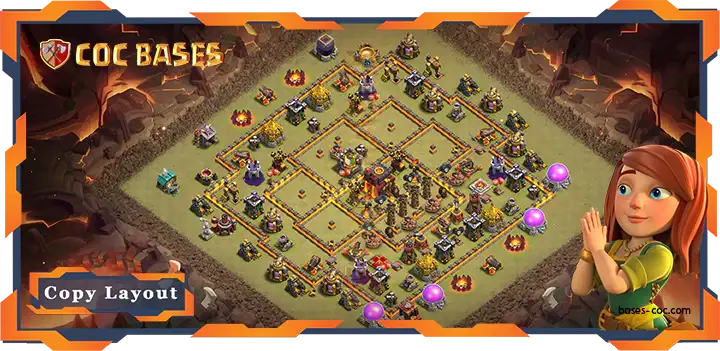 Tata letak pangkalan perang untuk Balai Kota 10 ini dirancang khusus untuk lingkungan kompetitif seperti perang dan Liga Perang Klan (CWL), dengan fokus pada strategi anti-segalanya. Penataan bangunan dan pertahanan dimaksudkan untuk memaksimalkan kemampuan perlindungan pangkalan terhadap berbagai jenis serangan. Inti dari desain ini adalah Balai Kota itu sendiri, yang diposisikan secara strategis untuk memberikan pertahanan yang kuat dengan mempersulit penyerang untuk mencapai dan menghancurkannya.