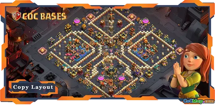The layout typically features strategic placements of key defensive structures such as Inferno Towers, Eagle Artillery, and Scattershots. These defenses are positioned in a manner that makes it difficult for attacking troops to reach the Town Hall and other vital buildings. Additionally, compartments are designed to delay enemy troops and create obstacles, forcing attackers to struggle for an effective attack strategy. The careful arrangement of traps, walls, and defensive buildings plays a critical role in the success of this layout.
