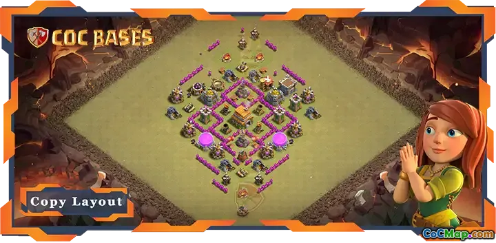 This Top War Base TH6 layout is expertly crafted to defend against all attack types, including walls, air, and ground assaults. Its strategic placement of defenses like Archer Towers, Cannons, and Air Defenses creates an impenetrable barrier around your Town Hall, ensuring maximum protection during clan wars.