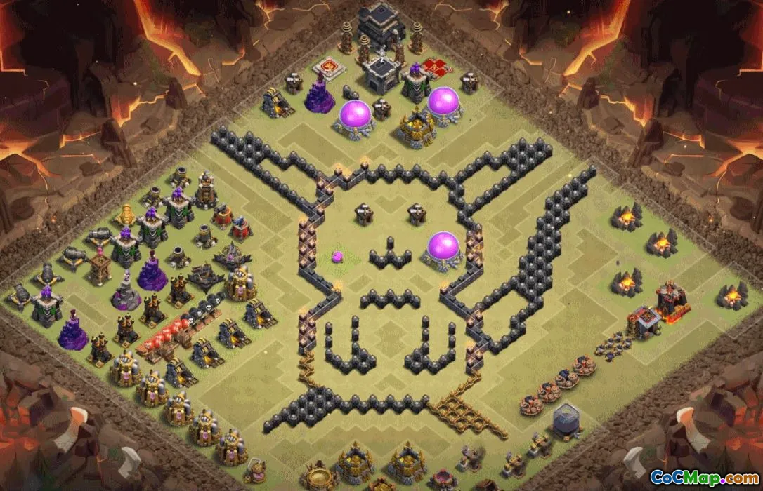 With a user-friendly copy link feature, players can easily replicate this base to their own Clash of Clans home village. Whether you're aiming for a fun, creative design or a serious progression layout, this base provides flexibility, enhanced defense, and a solid map setup, perfect for upgrade phases or competitive gameplay at TH9 level.