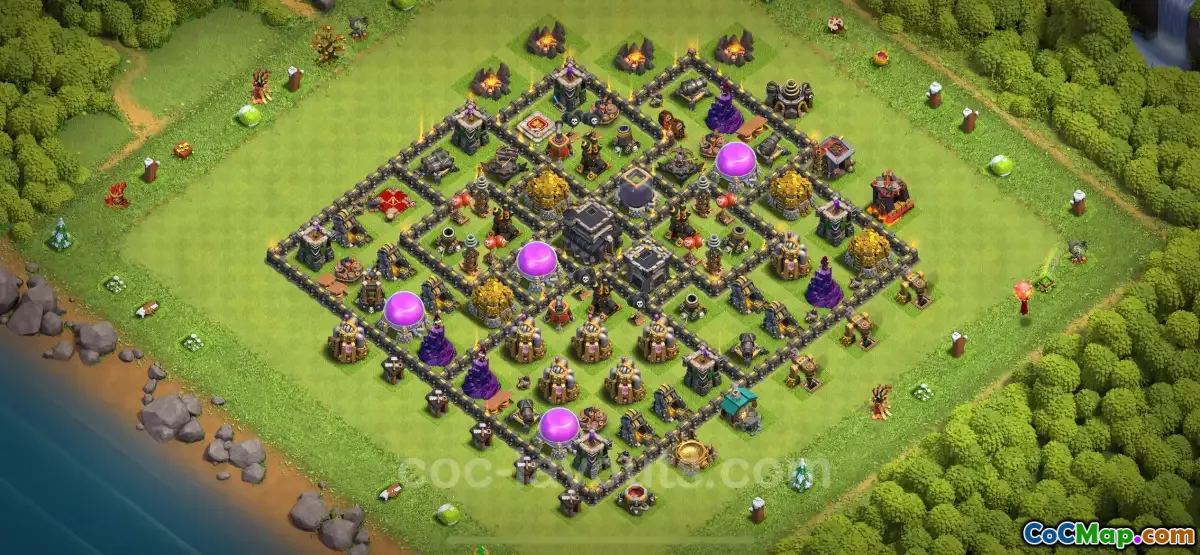 Tata letak dasar Balai Kota Level 9 di Clash of Clans dirancang untuk memberikan pertahanan yang efektif terhadap serangan, dengan fokus pada perlindungan sumber daya sekaligus mencegah kemenangan bintang tiga dari lawan. Hal ini sangat penting bagi pemain yang terlibat dalam pertanian, di mana menjaga sumber daya sangat penting untuk kemajuan dan peningkatan. Desainnya menggabungkan strategi yang bertujuan untuk menjaga gudang dan memastikan bahwa lawan menghadapi tantangan ketika mencoba menerobos pangkalan.