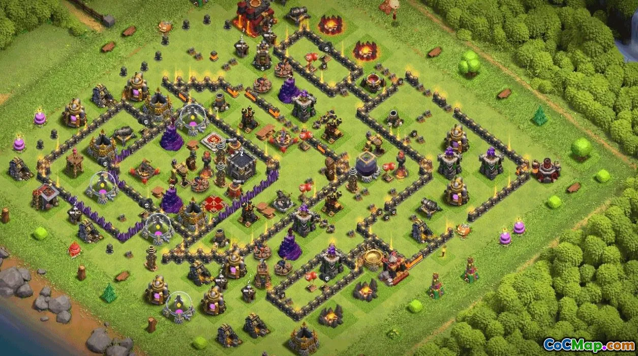 Designed as a coc map with clear copy instructions, this layout supports both trophy pressure and clan wars. It balances air and ground defenses while offering a scalable framework for future upgrades. You can obtain the shareable map reference through the guide, then duplicate the base in your own village to test performance in raids and wars. This Town Hall 10 layout is ideal for players seeking reliable protection and flexible offense in all game modes.