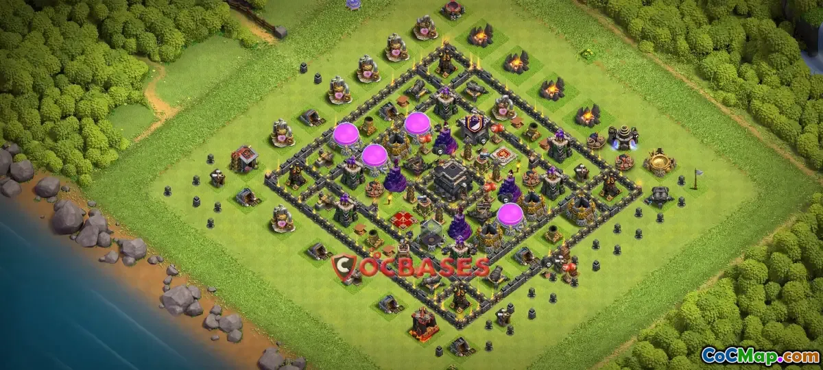 A Town Hall 9 farming base designed for the game Clash of Clans aims to effectively protect resources while minimizing the risk of losing them during attacks. This type of base focuses on strategically placing buildings and defenses to deter opponents, particularly shielded from achieving a three-star victory. By utilizing various forms of layout, players can secure their crucial resources, such as gold and elixir, ensuring they continue to build their villages and upgrade units. The placement of defensive structures plays a critical role in creating a robust defensive perimeter to safeguard these resources.