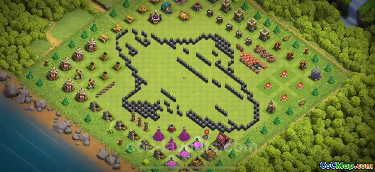 The "Top Troll Funny TH8 Base with Link" is another innovative design that caters to players looking for an unconventional defense strategy. This base layout emphasizes playful elements while ensuring that it still functions effectively against attacks. Players can replicate this funny troll base to surprise opponents who may underestimate its defensive capabilities due to its amusing appearance. Not only does this design serve as a practical solution for resource protection, but it also reflects the playful spirit of the game, encouraging creativity among the Clash of Clans community.