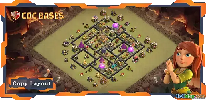 Overall, this TH8 war base layout serves as a comprehensive defensive strategy that aims to protect the Town Hall, safeguard resources, and effectively repel a wide range of attacking styles. By incorporating well-placed defenses and strategic resource allocation, players can enhance their chances of success in wars and CWL, ensuring that they remain competitive against other clans. The meticulous design reflects an understanding of common attack patterns, making it a valuable asset for any player at Town Hall 8.