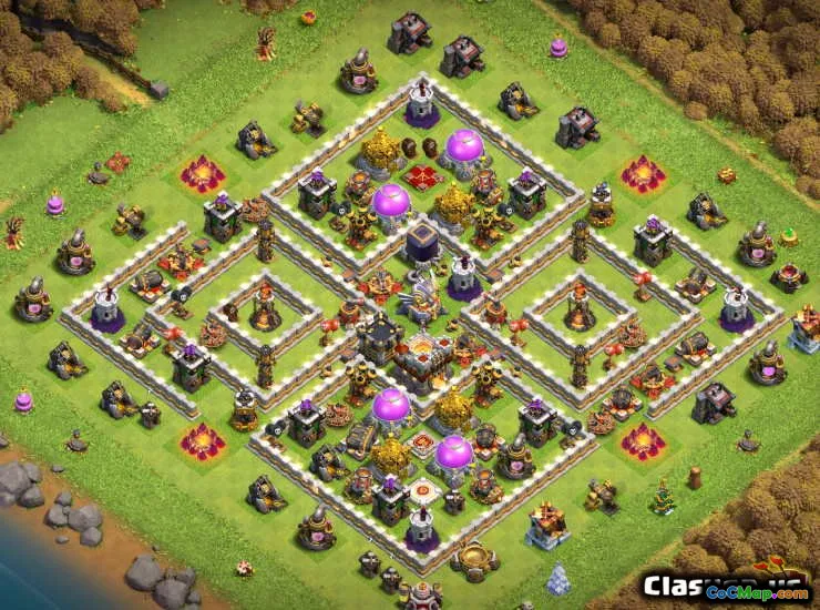 Un approccio popolare è il layout della base di trofei, che dà la priorità alla difesa e mira a mantenere un elevato conteggio dei trofei. Questo layout presenta in genere strutture difensive ben posizionate che possono respingere gli aggressori e proteggere il bottino prezioso. Al contrario, i progetti di base agricola si concentrano sulla salvaguardia delle risorse, rendendoli più difficili da rubare per gli avversari. Questi layout spesso posizionano i depositi in profondità all'interno della base, circondati da edifici difensivi per creare una roccaforte per il bottino guadagnato dei giocatori.