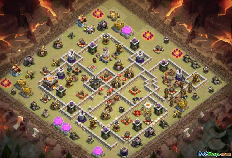 One popular type of layout for players at Town Hall 11 is the farming base. This layout is designed to prioritize the protection of resources by placing storages in secure locations. The goal is to minimize losses during raids while maximizing resource accumulation, allowing players to upgrade their buildings and troops effectively. Additionally, trophy bases at this level aim to protect trophies by strategically positioning defenses and traps to fend off attackers.