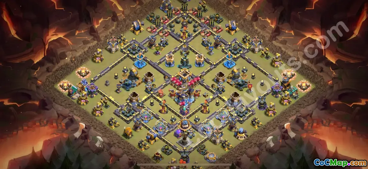 This exceptional Town Hall 18 war base is designed to maximize defense against 2-star attacks, combining robust walls, strategic trap placement, and well-shielded defenses to frustrate attackers. Its layout is optimized for crystal and league wars in 2025, focusing on preventing easy 2-star success through clever compartmentalization and multi-layered defenses.