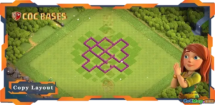 The Town Hall is strategically positioned in the upper part of the base, which is surrounded by sturdy walls. This placement is intentional, as it forces attackers to take a more difficult route to reach the Town Hall. By putting up strong walls, the base design enhances the overall defense, making it a challenge for opponents to score trophies by taking down the Town Hall quickly.