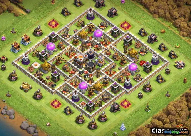 Oltre alle basi agricole, i giocatori possono anche esplorare i layout della base di trofei che danno la priorità alla difesa rispetto alla raccolta delle risorse. L'obiettivo di questi layout è garantire trofei prevenendo le vittorie nemiche durante gli attacchi. Una base di trofei ben progettata al municipio 11 bilancia forti strutture e trappole difensive per scoraggiare gli avversari, migliorando la posizione competitiva complessiva del giocatore in Clash of Clans.