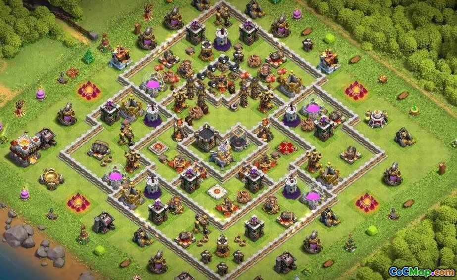 La disposizione della base di guerra è particolarmente sottolineata come cruciale per il successo nelle guerre tra clan. Tipicamente presenta un castello del clan centralizzato e difese posizionate strategicamente per contrastare gli attacchi nemici. Inoltre, l'articolo menziona l'importanza di mantenere le proprie risorse al sicuro dai raid, cosa che può essere ottenuta utilizzando un layout di base agricola. Questo layout generalmente si concentra sulla protezione dei magazzini sacrificando gli edifici meno importanti in periferia.