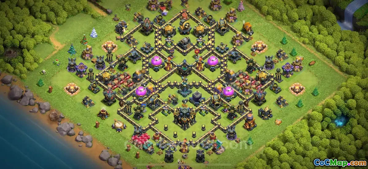 This Trophy (Defense) Base TH17 is specially designed for Clash of Clans players aiming to increase their trophies while maintaining strong defenses. The hybrid layout combines strategic placement of walls, traps, and defenses to effectively counter both attacking armies and trophy pushers. Its compact design prioritizes protecting valuable resources and Town Hall, ensuring attackers are consistently repelled, making it ideal for trophy hunting in 2025.