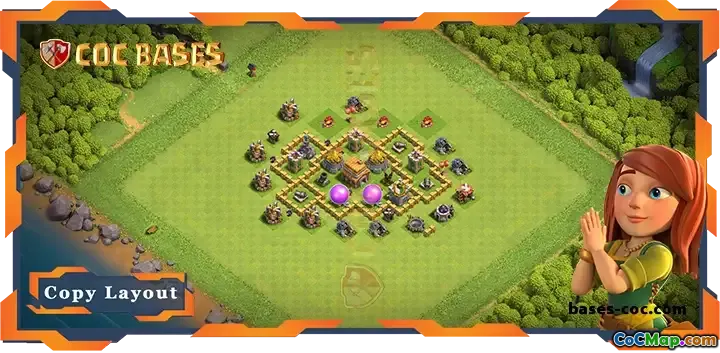 This TH5 farming base is optimized to protect your resources while preventing enemy players from achieving a three-star victory. Its strategic placement of defenses, walls, and traps creates a strong barrier against common attack strategies, making it ideal for farming and resource protection.