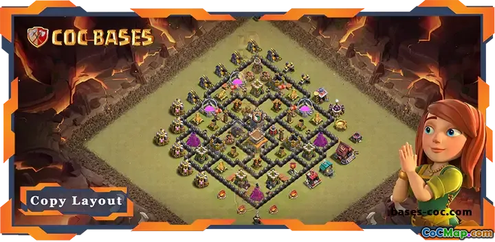 Featuring centralized key defenses, well-placed traps, and effective compartmentalization, this layout discourages early resets and keeps enemy troops contained. The included link allows for quick access and easy sharing with your clan. Perfect for Clash of Clans players aiming to improve their defense and maintain a strong war record at Town Hall 8.