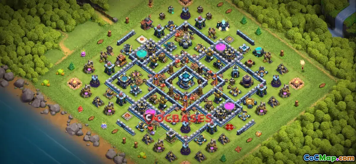 Discover the ultimate Town Hall 13 hybrid base design! Maximize defense with anti-3 star layouts, rings, and anti-ground strategies. Copy your base now!