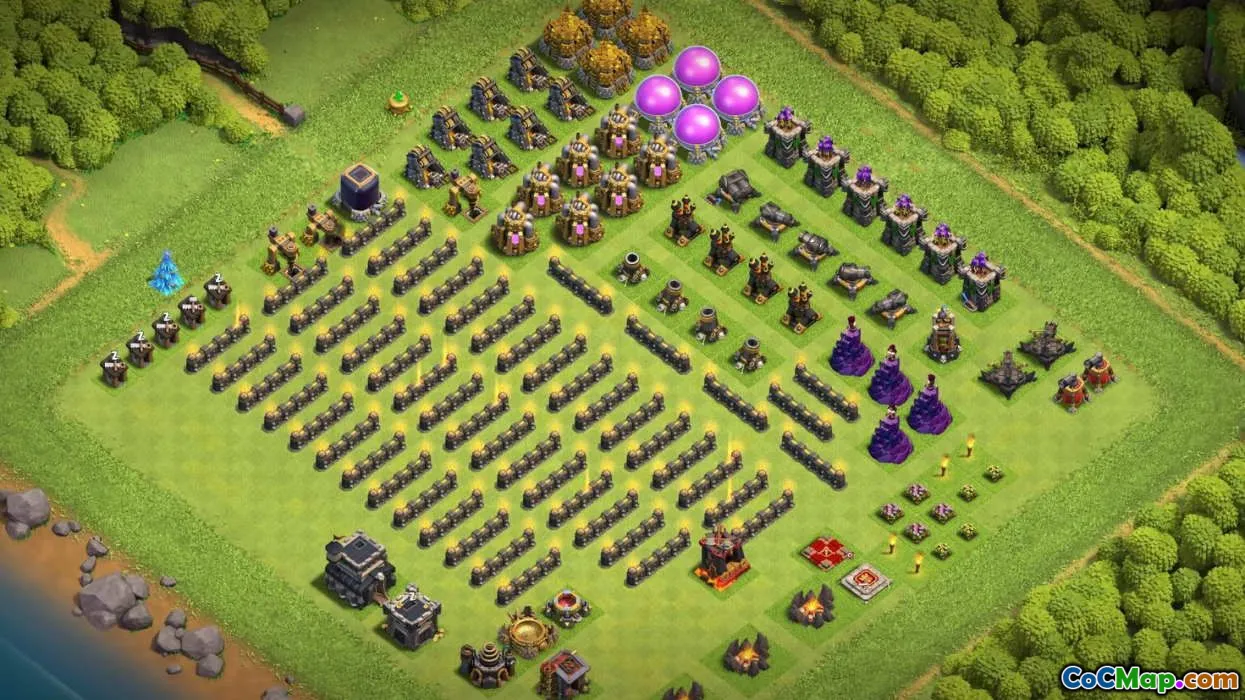 Discover a well-designed Town Hall 9 base layout perfect for defending your resources and trophies. This layout strategically places defenses, traps, and walls to maximize protection against attacks, making it ideal for both Trophy pushing and resource farming.