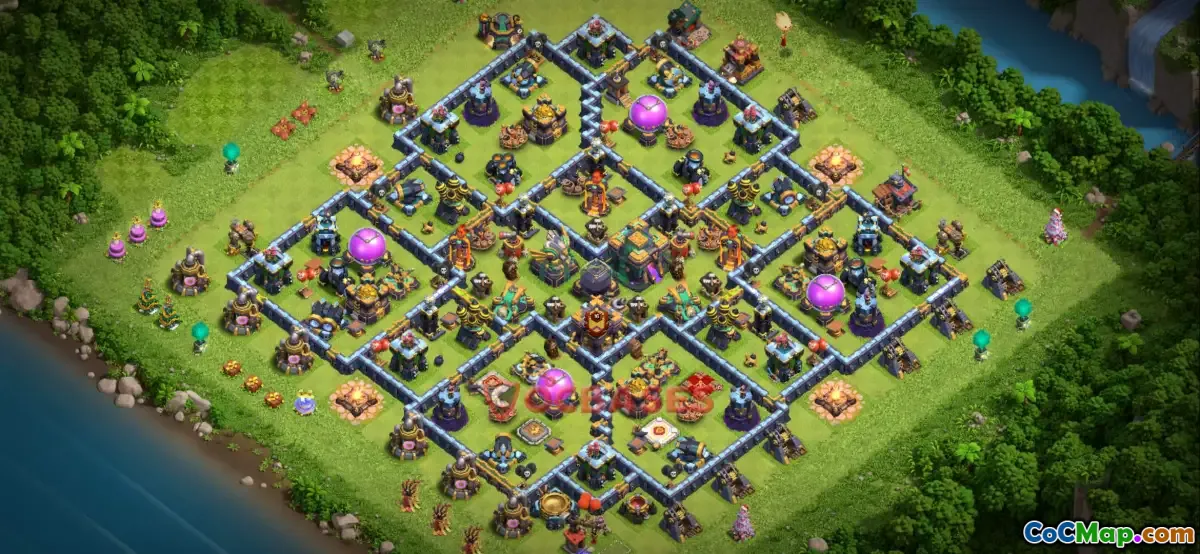 In Clash of Clans, Town Hall 14 introduces players to new strategies and base designs, particularly focusing on hybrid bases that balance trophy pushing and farming. A hybrid base is designed to effectively defend against various attack strategies while still allowing for resource collection. This type of base layout is particularly useful for players who want to maintain a decent trophy count while also protecting their resources from raids.