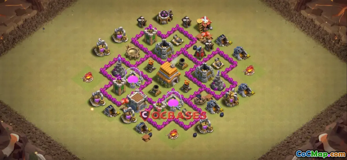 A Town Hall 6 war base in Clash of Clans is strategically designed to defend against enemy attacks during clan wars. The primary goal of this type of base is to hinder opponents from achieving a three-star victory by preventing them from successfully destroying the Town Hall and the surrounding defenses. A well-constructed war base will feature a layout that confuses attackers and forces them to waste troops and spells while trying to breach defenses.