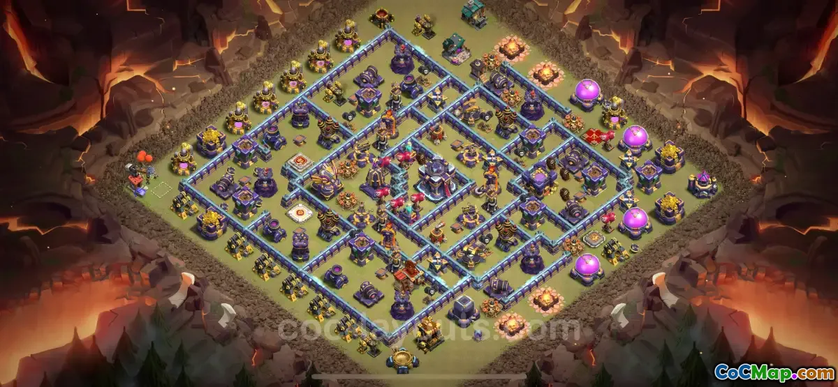 さらに、この基地レイアウトには、TH15 で重要なさまざまな防御建物が組み込まれています。イーグル砲、インフェルノ タワー、スキャッターショットなどの主要な構造物は、幅広い攻撃戦略に対して効果を最大限に発揮できるように配置されています。さらに、地上ユニットと航空ユニットをターゲットとする防御建物と併せて、航空地雷や巨大爆弾を探すようなトラップの使用は、敵軍が基地防御を突破するのを阻止するために不可欠になります。