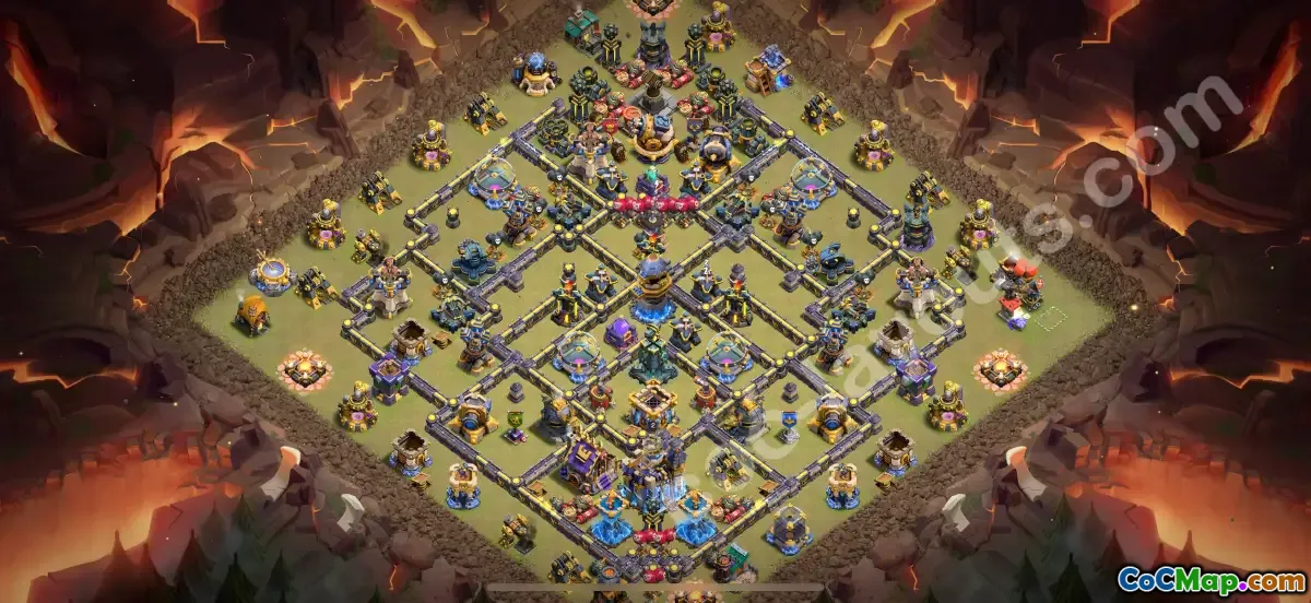 In Clash of Clans 2025, having a robust Town Hall 18 war base is essential for defending against intense Clan War League attacks. This optimized TH18 war base layout is specifically designed to protect key resources and prevent enemy deep dives, ensuring your clan’s victory remains secure. The layout strategically positions defenses, traps, and heroes to create multiple layers of protection against various attack strategies.