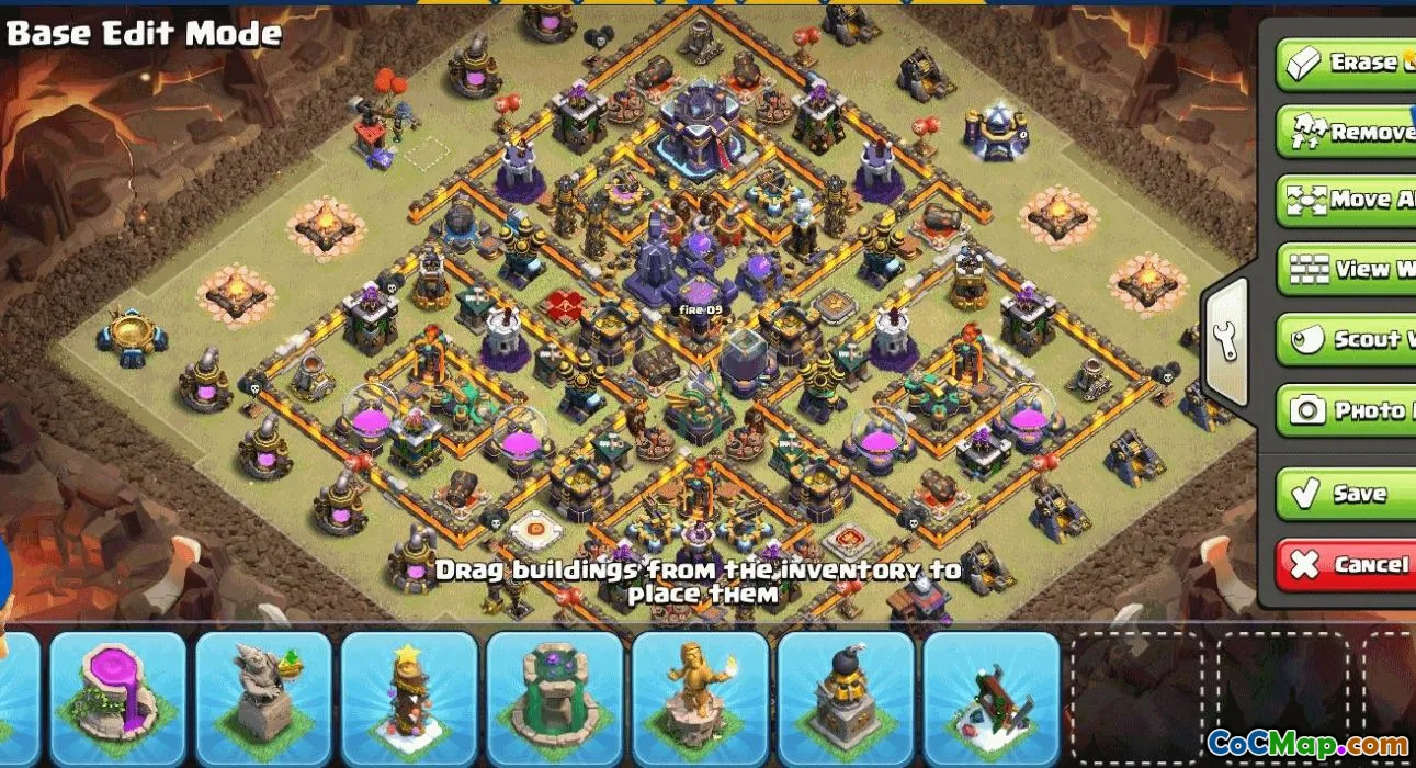 For players focused on competitive aspects, the layout offers specially designed war bases that prioritize defense against enemy attacks, as well as trophy bases optimized to defend or win trophies based on current objectives. Additionally, farming bases help in safeguarding resources from raids, ensuring that players can build and upgrade without frequent losses. A helpful Clash of Clans map is also included, providing an overview of the base locations and strategic placements for effective defense and attack planning.