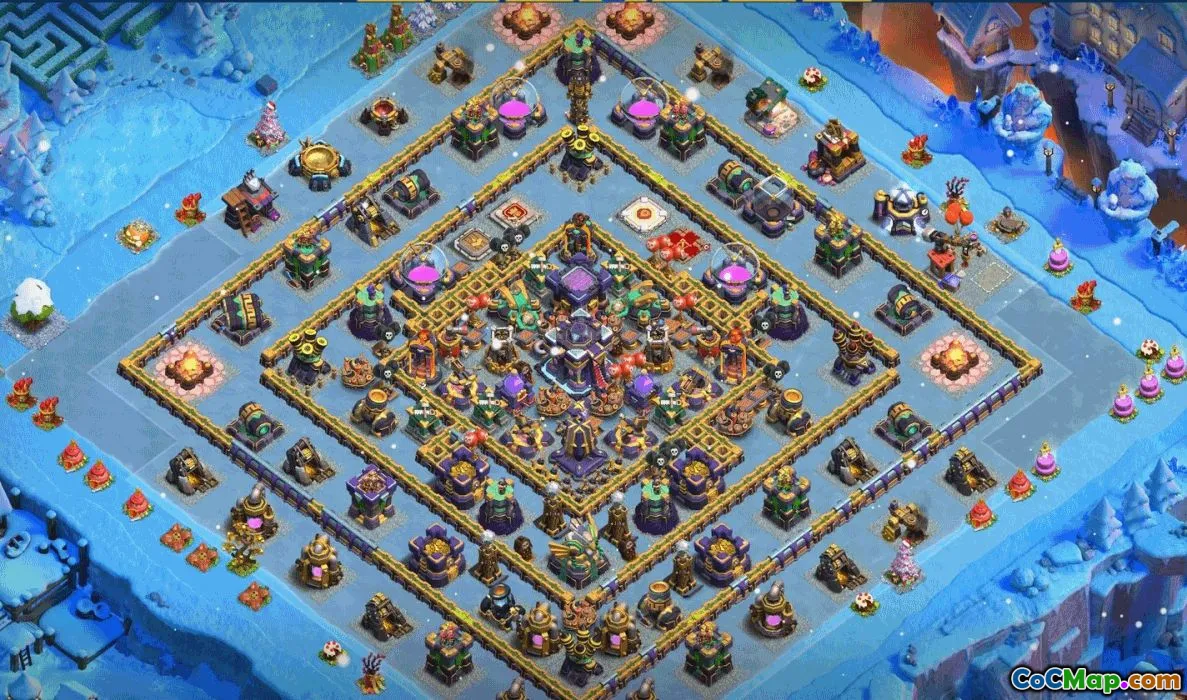 The base layouts are carefully crafted to suit different objectives in the game. For example, trophy bases are optimized for defending against opponents seeking to win trophies, while farming bases focus on safeguarding resources from raiders. War bases are tailored to maximize defenses during clan wars, with strategic placement of traps, walls, and defenses to deter attackers.