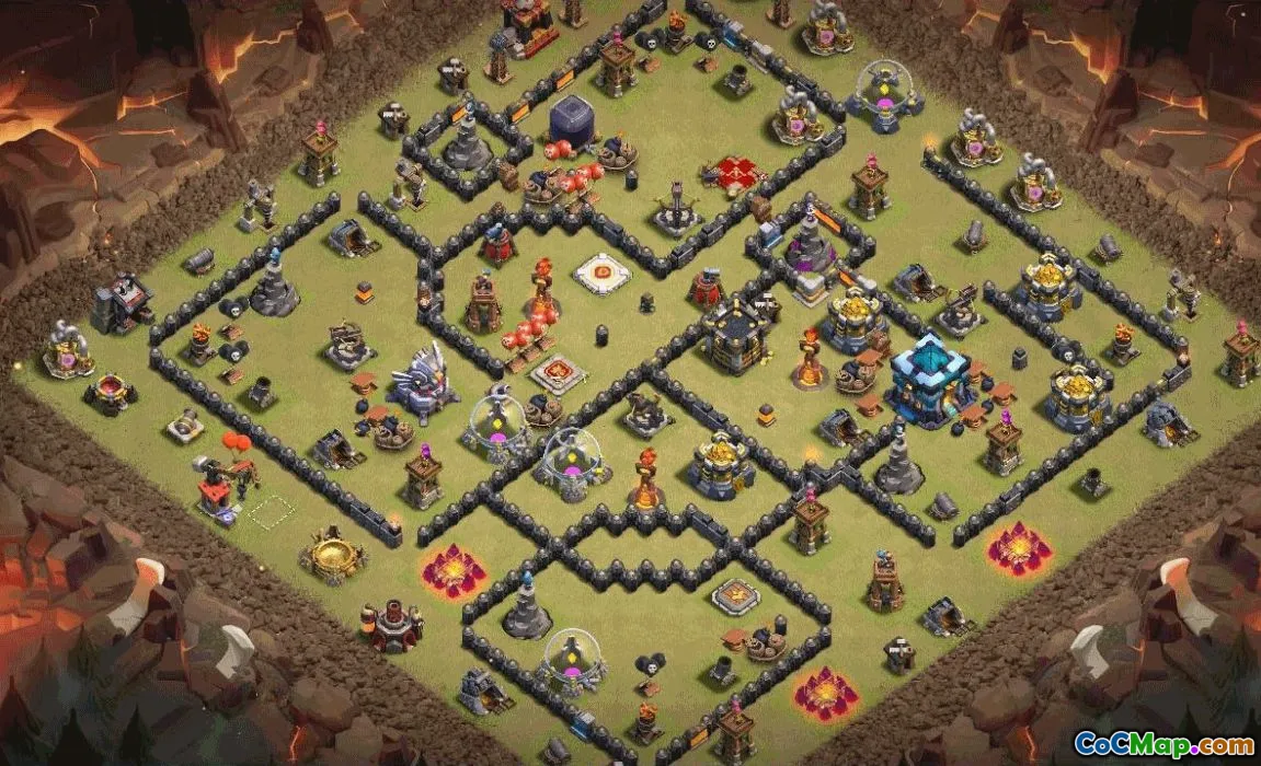 This guide presents a ready-to-use Town Hall 13 base layout with a direct copy link optimized for trophy pushing and clan wars. The design centers on a protected core with the Eagle Artillery, well-distributed air defenses, and strategically placed traps to deter frequent golem and blimp raids. Its compartmental layout channels attacking troops while preserving key structures and ensures a balanced defense against both air and ground assaults.