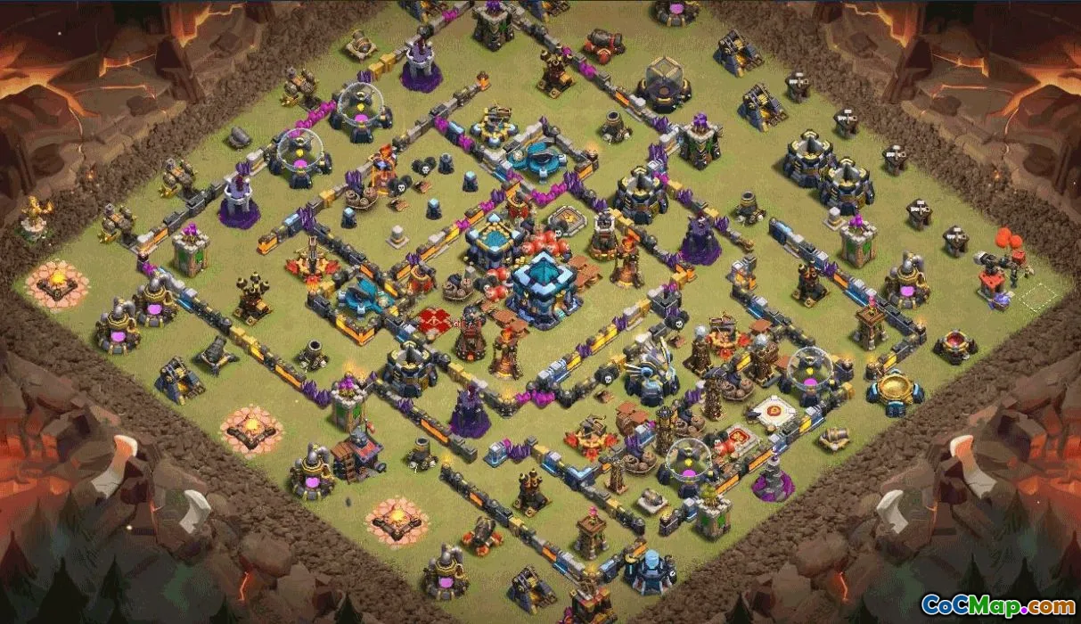 This copy-ready base layout for Town Hall 13 is designed as a versatile template for home village, trophy base, and war base. The core around the Town Hall 13 centers on a shielded Eagle Artillery while layered walls and well-placed defenses create strong funnels. The coc map balances storages, defenses, and traps to slow heavy charges and protect resources. It supports steady trophy progress and reliable clan war performance, delivering a balanced defense that’s easy to implement and adapt.