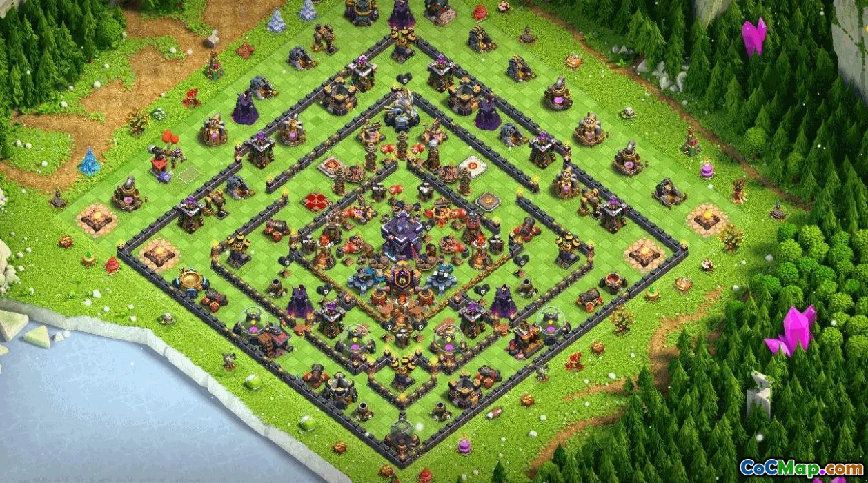 The provided base layout offers a comprehensive design tailored for Clash of Clans players seeking effective setups for various aspects of the game. It includes detailed arrangements for the town hall 15, ensuring that players can protect their most important building while maximizing defensive capabilities. This layout is ideal for both attacking and defending, depending on the strategic placement of defenses, walls, and traps.