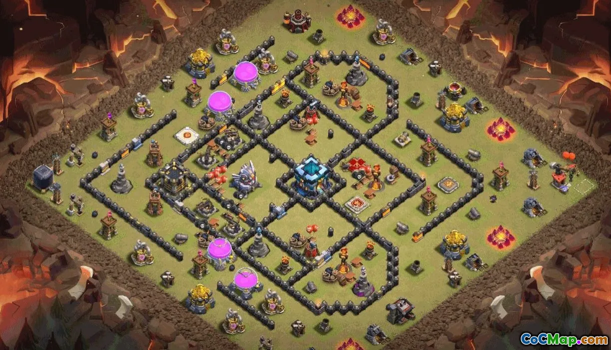Discover a ready to copy TH13 base layout kit designed for home village, trophy bases, and war bases in Clash of Clans. The design protects the Town Hall with layered compartments, strong defense coverage, and smart trap placement while keeping storages secure. This layout supports balanced defense in mid to end game and adapts to evolving meta.