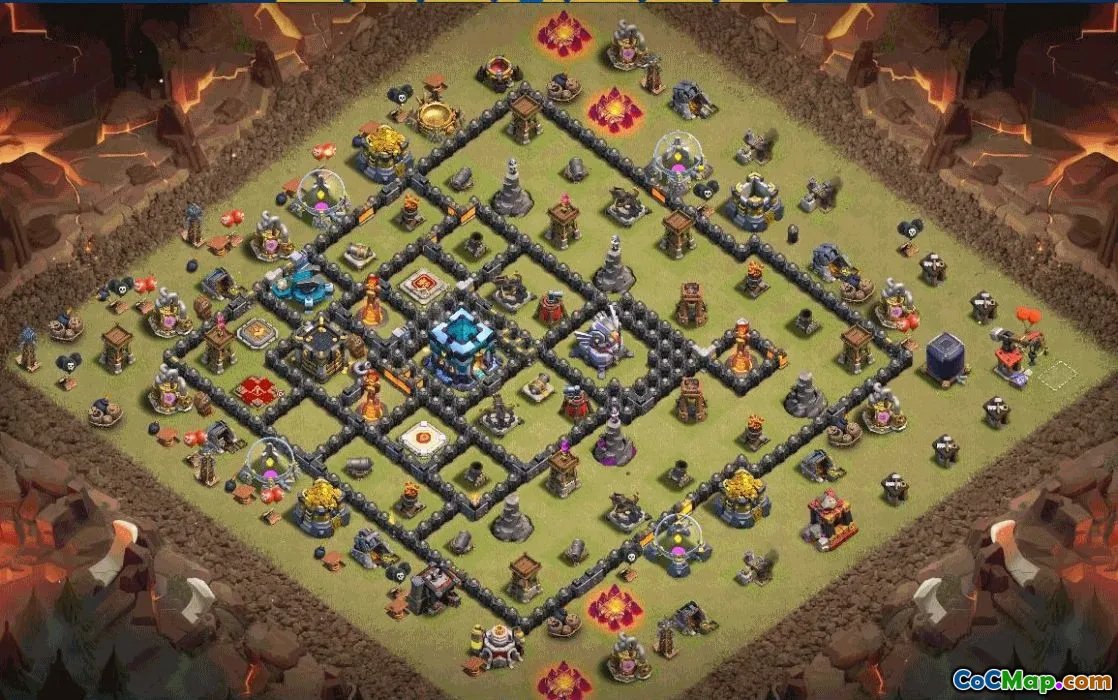 Designed for Town Hall 13, this home village and war base centers the Eagle Artillery and a protected core to shield the Town Hall while enabling effective funneling. The layout blends sturdy splash damage coverage with X-Bow and Inferno Tower protection, creating tough, multi-stage defenses that deter both ground and air raids.