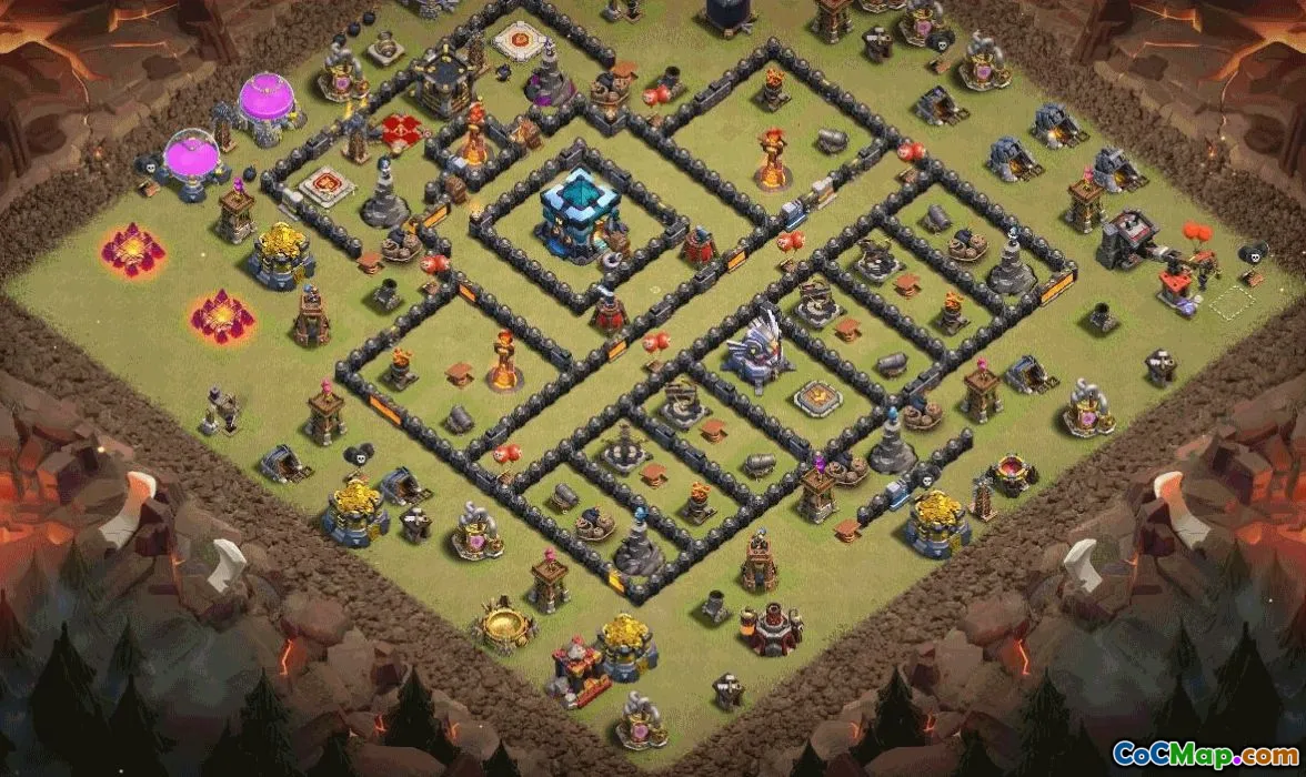 Discover a copy-ready Town Hall 13 base layout optimized for home village, trophy pushing, and clan wars. This design uses a single copy link to streamline setup across modes.