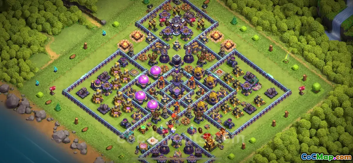 This Town Hall 15 base plan is tailored for hybrid use, meaning it functions well for both resource accumulation and overall defense. The inclusion of anti-air structures helps players defend against popular air attacks that may target farming bases, making it easier to retain gathered resources. Players in the Clash of Clans community can utilize the provided link to access and copy the base design, ensuring they have a competitive edge in protecting their earnings.