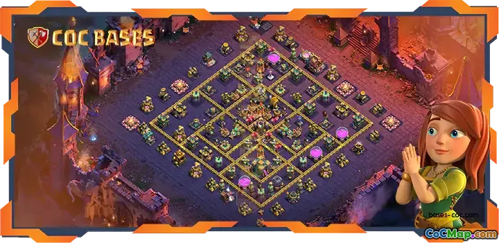 This meticulously designed TH14 war base combines strong defensive structures with strategic placements to protect your Town Hall, resource storages, and key defenses. It is optimized for trophy pushing and hybrid attacking styles, making it ideal for clan wars and farming. The layout features well-placed traps, protected Inferno Towers, and layered walls that hinder enemy progress, ensuring your base remains resilient against high-level attacks.